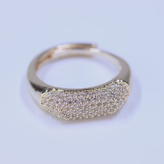 Brillo que nunca se apaga: Este anillo en chapa de color Oro de alta calidad presenta una forma ovalada abovedada cubierta por un pave completo de zirconias brillante, creando un efecto de luz constante desde cualquier ángulo. Ajustable del 5 al 9 para un ajuste perfecto en cualquier dedo y resistente al agua del mar, detergentes, sudor y uso diario ideal para el día a día, playa o noches especiales.